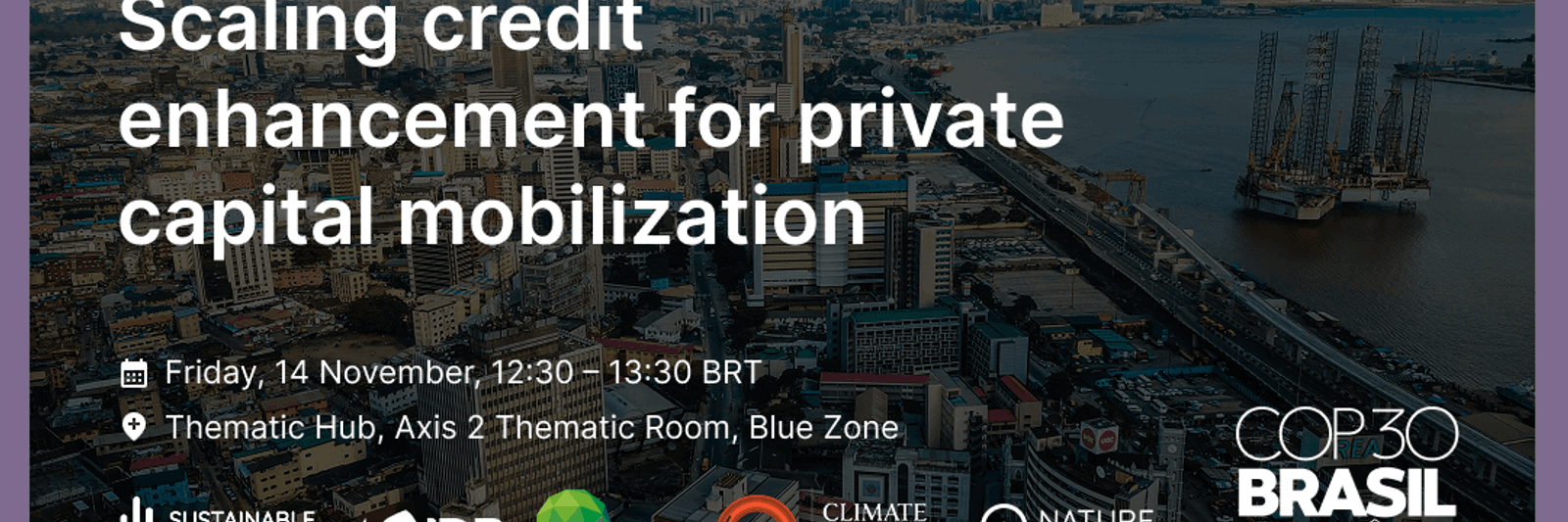 Add to Calendar 2025/11/14 12:30:002025/11/14 13:30:00America/Sao_PauloScaling credit enhancement for private capital mobilization GETTING TO THE EVENT TODAY