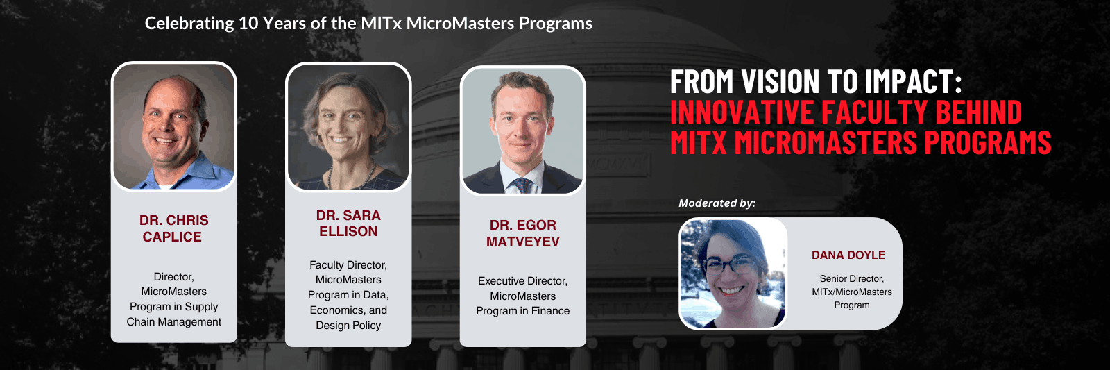 Join us for a special online event celebrating the 10th anniversary of MITx MicroMasters programs! Hear directly from some of the visionary faculty who helped shape this groundbreaking initiative: