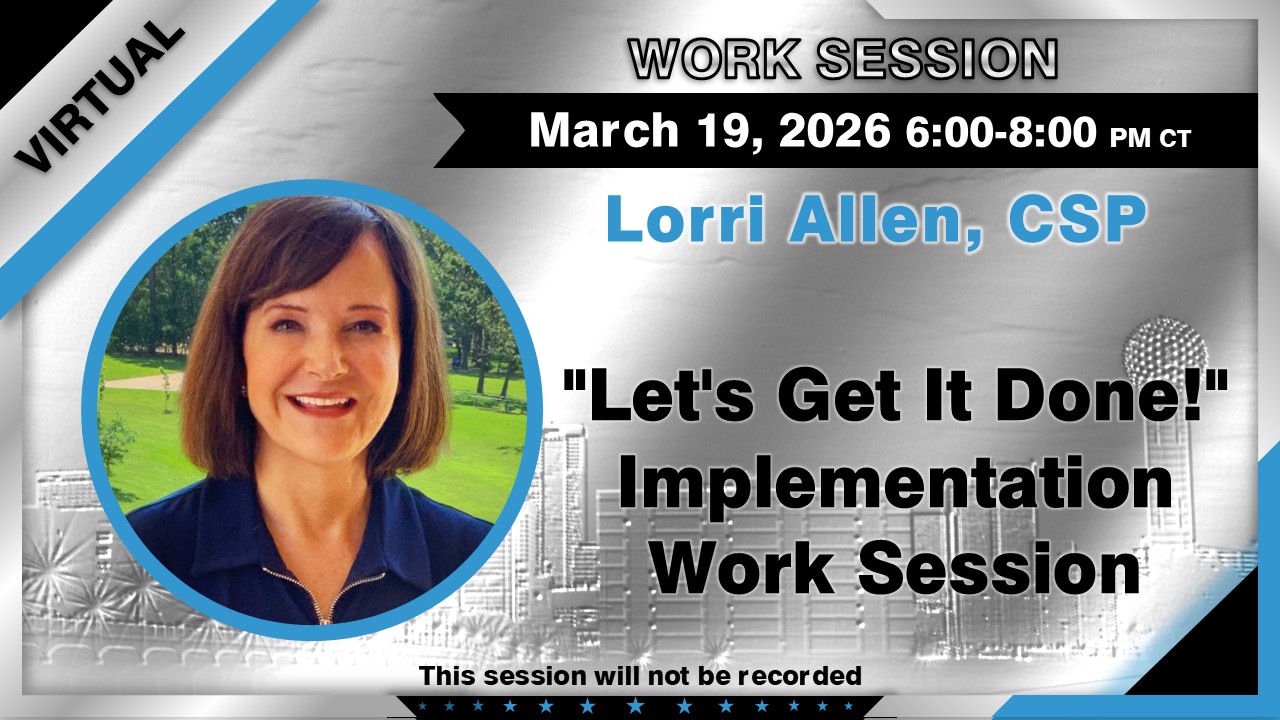 NSA-NT - Implementation Work Session"Let's Get It Done!" with Lorri Allen, CSP