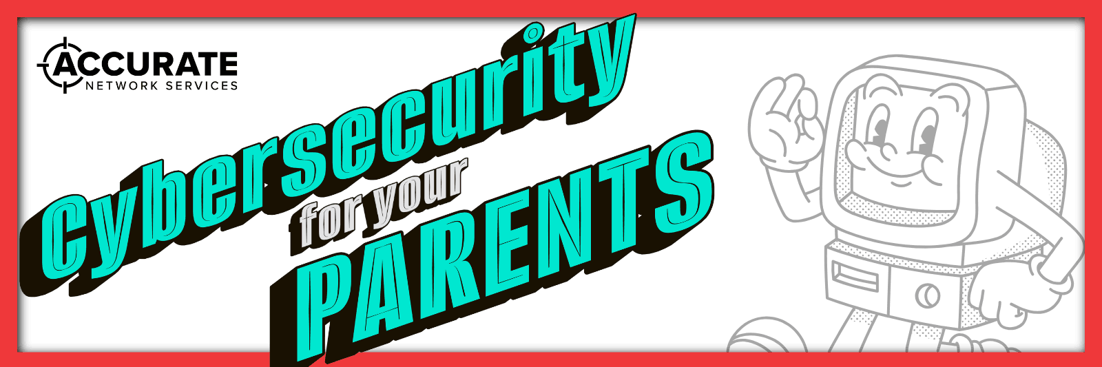 That's why Accurate Networks is proudly offering our clients' parents (and grandparents, aunts, neighbours, etc.) the opportunity to learn more about protecting themselves online with our free, in-person seminar, Cybersecurity for Your Parents.