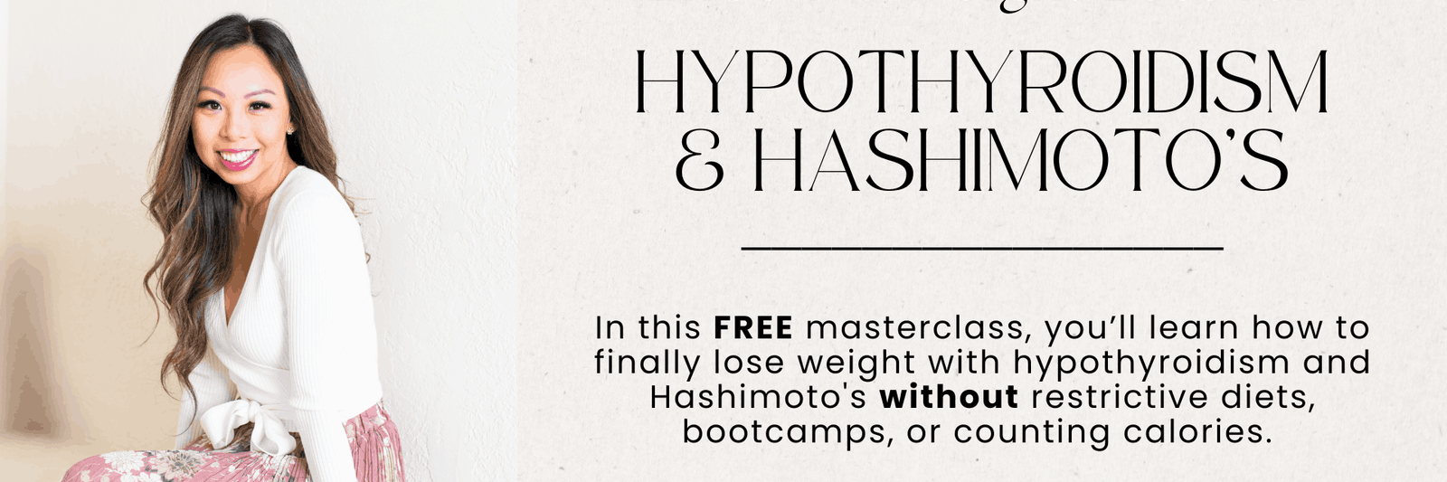 In this FREE 3-day masterclass, you'll learn how to finally lose weight with hypothyroidism and Hashimoto's—without restrictive diets, bootcamps, or counting calories.
