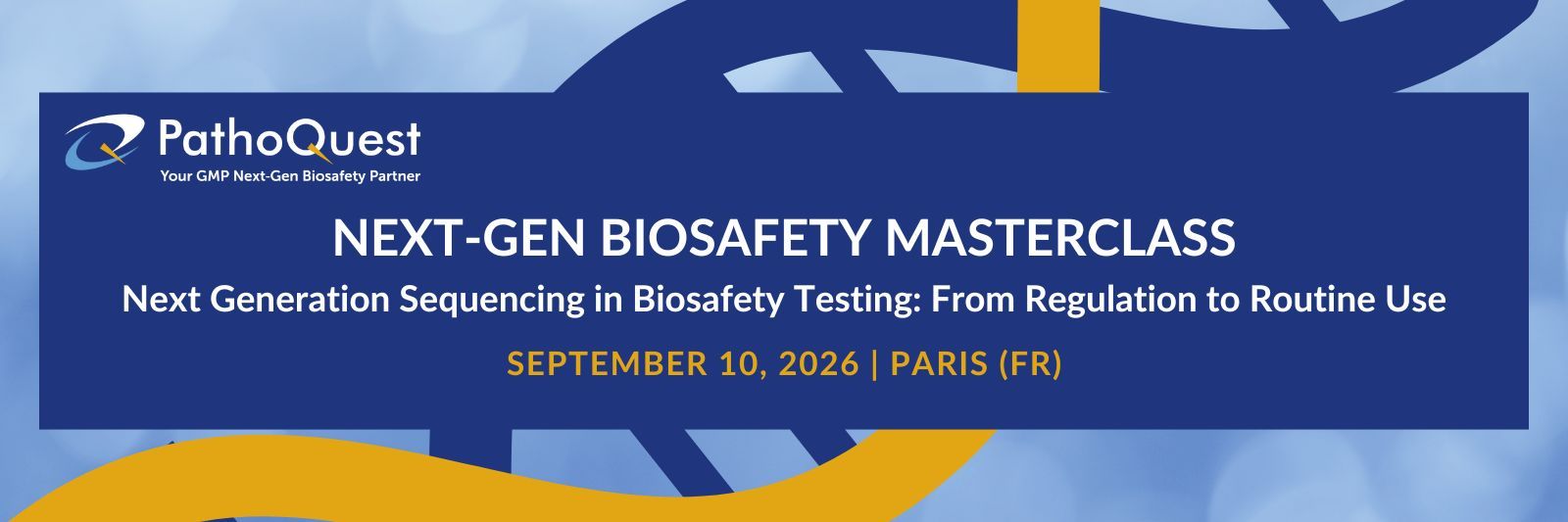We are pleased to invite you to save the date and register for the Next-Gen Biosafety Masterclass: "Next Generation Sequencing (NGS) in Biosafety Testing: From Regulation to Routine Use", hosted by PathoQuest.