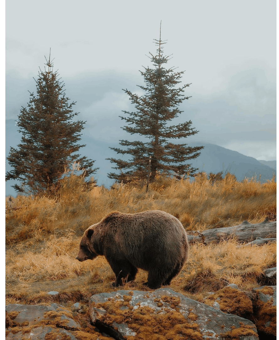 We’ll build up rich, rugged textures in the meadow, shape our evergreen trees with confident palette knife strokes, and soften everything with misty blue mountains beneath a calm, overcast sky — all while bringing Mama Bear to life right at the heart of the painting.