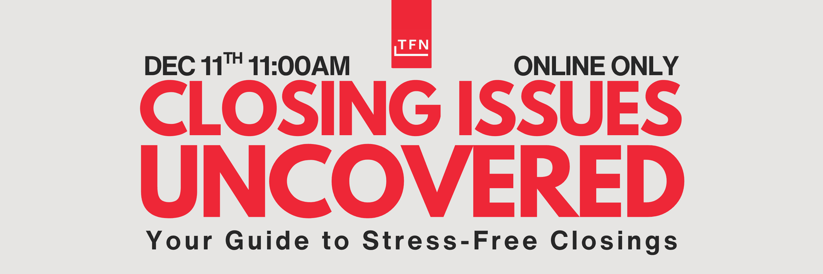 Join TFN Realty on December 11th at 11AM for a focused session with Jonathan A. Hacohen (Kormans LLP). Learn how to identify, prevent, and resolve common closing issues, protect your clients, and keep deals on track. Available online.