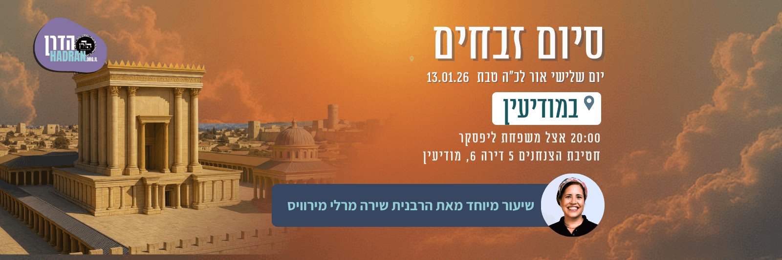 הצטרפו אלינו לחגיגה בסיום מסכת זבחים במודיעין.