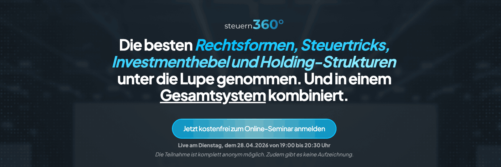 Die besten Rechtsformen, Steuertricks, Investmenthebel und Holding-Strukturen unter die Lupe genommen. Und in einem Gesamtsystem kombiniert.