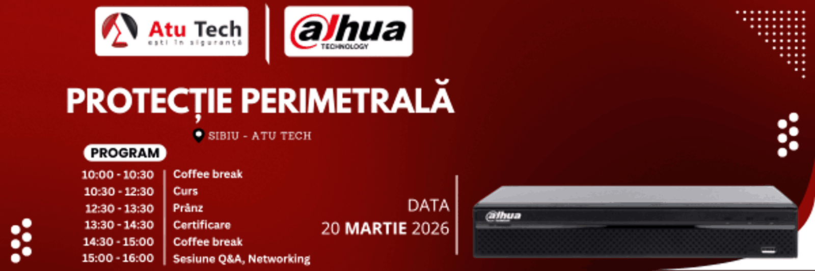Alături de partenerii noștri Dahua, vă invităm să participați la un curs de certificare protecție perimetrală pe 20 Martie 2026! Este o oportunitate excelentă de a vă perfecționa și a descoperi soluții avansate pentru protecție perimetrală.