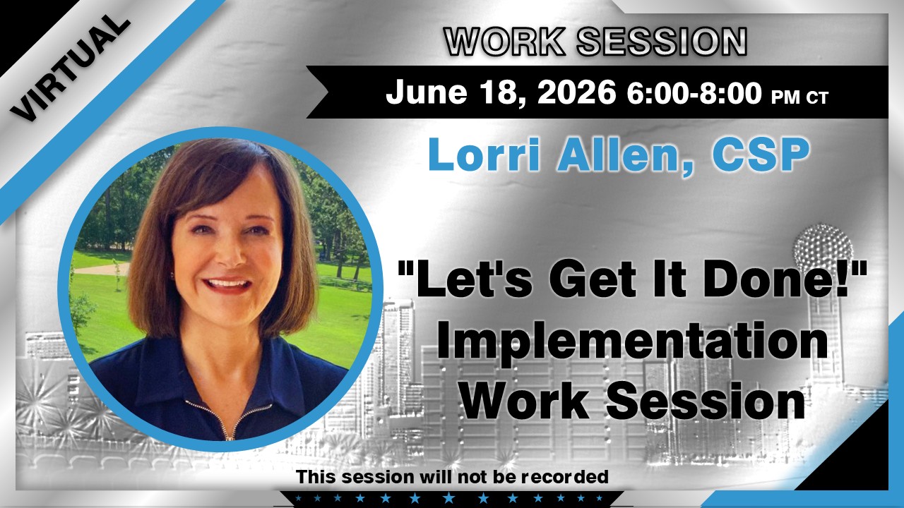 NSA-NT - Implementation Work Session"Let's Get It Done!" with Lorri Allen, CSP