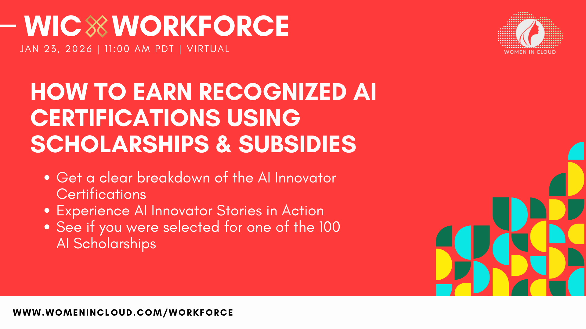 [Virtual] WICxWorkforce: How to Earn Recognized AI Certifications Using Scholarships & Subsidies
