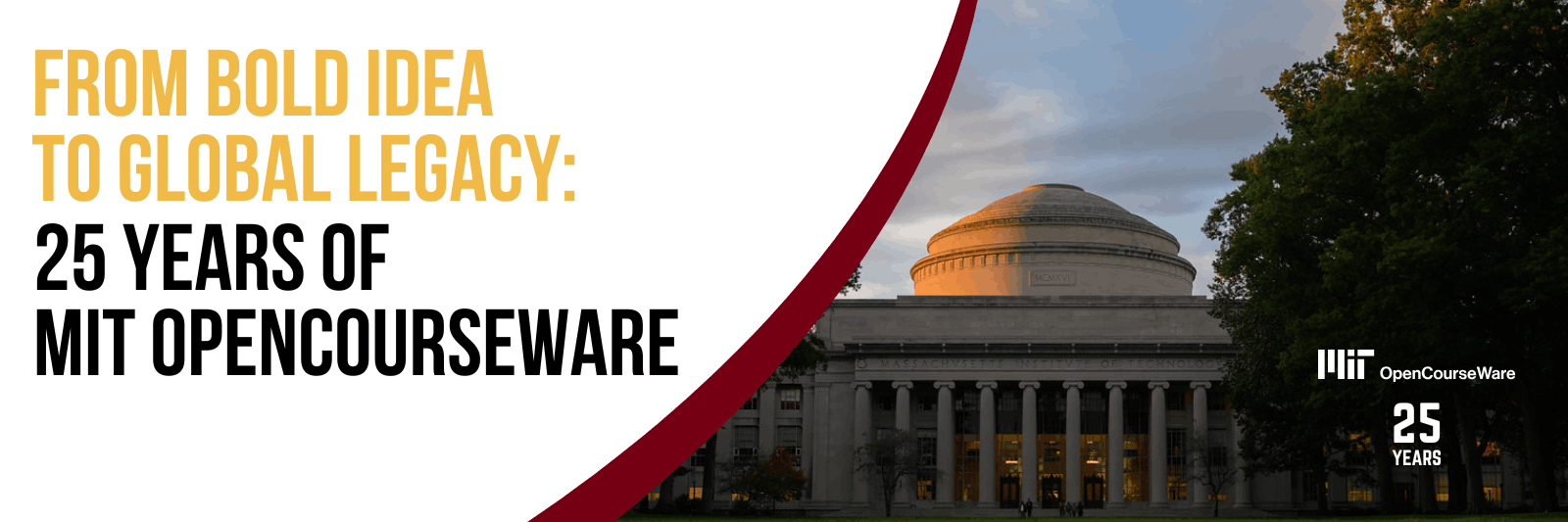 Celebrate 25 years of MIT OpenCourseWare (OCW)—a bold experiment that became a global movement. This half‑day symposium brings together learners, educators, supporters, open knowledge leaders, and the MIT community to honor OCW’s extraordinary impact and to chart the future of open education.