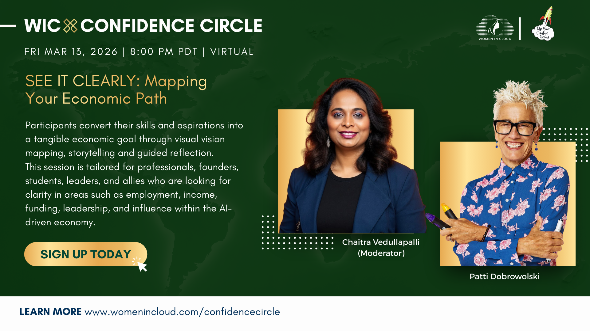 Add to Calendar 2026/03/13 08:00:002026/03/13 09:30:00America/Los_Angeles(Virtual) WICxConfidenceCircle: SEE IT CLEARLY — Mapping Your Economic Path